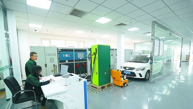 電動汽車實驗室對電動汽車充電設(shè)施進行檢測研究,實驗室研發(fā)的電動汽車充電設(shè)施自動化檢測裝置,能使充電設(shè)施單樁檢測時間從4小時縮短至0.5小時,讓電動汽車用戶可安心使用充電樁;實驗室創(chuàng)新性的充電設(shè)施充電互通性測試法,為充電站建設(shè)及電源的規(guī)劃布局提供有力支撐。