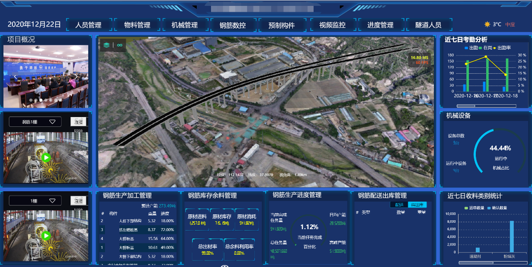 數(shù)字基建現(xiàn)場智慧管控平臺借助物聯(lián)網(wǎng)、云計算、大數(shù)據(jù)、VR/AR多媒體、北斗定位、區(qū)塊鏈等技術(shù),以提升工程建設(shè)安全和質(zhì)量為重點,以“信息系統(tǒng)服務(wù)于管理提升與效率”為建設(shè)原則,以自有平臺為技術(shù)架構(gòu)核心,融合BIM+GIS及物聯(lián)網(wǎng)平臺,推進基于BIM技術(shù)為支撐的三維設(shè)計、工程管控,實現(xiàn)對設(shè)計、施工、進度、質(zhì)量、安全等各環(huán)節(jié)工作過程數(shù)據(jù)的深度融合和一體化展示;同時與人員、機械、車輛、物資、工法、環(huán)境等業(yè)務(wù)相結(jié)合,實現(xiàn)工程全過程的數(shù)據(jù)自動采集、智能分析及智能預(yù)警;通過人機交互、感知、決策、執(zhí)行和反饋,客觀分析施工場域的進度、安全、質(zhì)量及風(fēng)險等的特征和規(guī)律,將虛擬的業(yè)務(wù)系統(tǒng)與真實世界的場景深度融合,實現(xiàn)“施工現(xiàn)場全面感知”、“工程建設(shè)綜合指揮”、“工程BIM全生命周期管控”、“安全教育沉浸體驗”的建設(shè)目標(biāo),全面實現(xiàn)施工現(xiàn)場的管理智慧化、生產(chǎn)智慧化、監(jiān)控智慧化和服務(wù)智慧化。