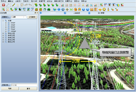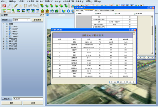 Functions: Integrating GIS and 3D technology, it utilizes precise and complete data about power grid state, 2D and 3D topographic and geomorphic conditions plus various design resources. It enables engineers quickly and accurately design lines, select conductors, arrange poles or towers. Also it allows 2D or 3D display of design results, automated matching of accessories for poles or towers, materials statistics, simulated calibrating of design results and selection of substation location. Thus it accelerates the designing process and improves design quality while relieving designer’s workload.